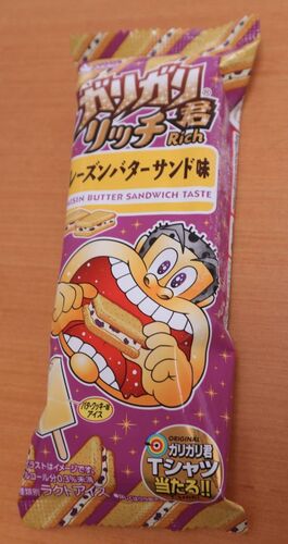 ガリガリ君リッチ Rich レーズンバターサンド味 140kcal100ml 119円税込 RAISIN BUTTER SANDWICH TASTE バタークッキー味のアイス レーズン&クッキー入りかき氷を包んだアイスバー。 ラクトアイス アルコール分0.3%未満 無脂乳固形分3.8%乳脂肪分2.1%植物…
