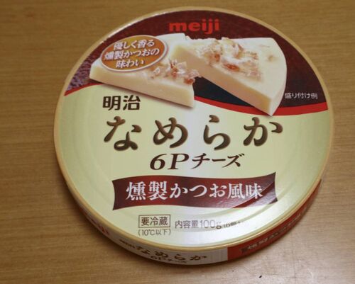 明治なめらか6Pチーズ 燻製かつお風味 100g 54kcal/1個(16.7g)340円+税 優しく香る燻製かつおの味わい 優しいかつお節の香りとチーズのコクが感じられるとともに、原料チーズの絶妙な配合で実現した、やわらかくなめらかな食感を楽しめる6Pチーズです。 種…