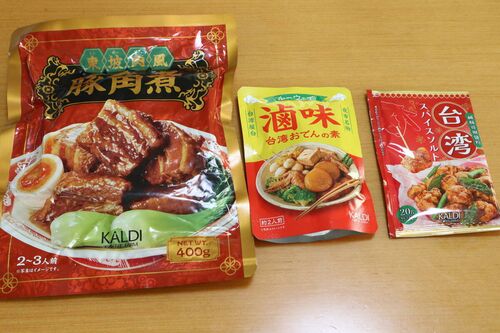 東坡肉風 豚角煮 400g 1077円 276kcal/100g 台湾おでんの素(ルーウェイ) 80g 198円 143kcal 台湾スパイスソルト 98円 20g 59kcal 大皿鶏(ダーパンチー)の素 56g(53+3) 180円 2~3人前。69kcal 雲南風キノコ鍋の素 50g 198円 28kcal/25g 東坡肉風 豚角煮 …