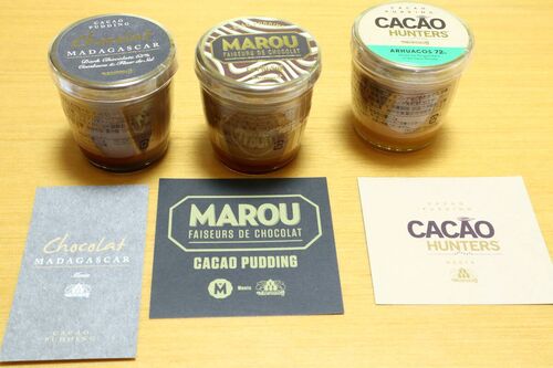 モロゾフ カカオハンター コラボチョコプリン CACAO HUNTERS アルアコ72% 400円+税 87g 164kcal MAROU CAPHE SUA 400円+税 87g 176kcal CACAO PUDDING Chocolat MADAGASCAR 400円+税 87g 170kcal COLONBIA MADAGASCAR VIETNAM WORD CACAO MeetsMorozoff CA…
