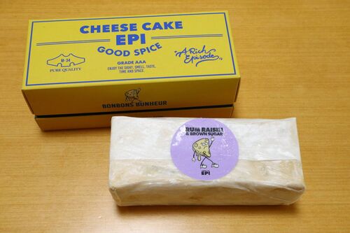大阪・阪神梅田本店さんのイベントで購入 黒糖×ラム×レーズンBrown Sugar × Ram × Raisins 3300円税込 373kcal/100g CHEESE CAKE EPI GOOD SPICE BONBONS BONHEUR GRADE AAA チーズのグレードのようなパロディをきかせた面白い箱 洋酒香る大人の味わい ラム…