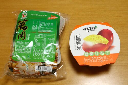 難波の台湾祭STOREさんにて 台湾マンゴープリン 130g 118.5kcal 萬用滷包 35gが2袋 400円 パクチー水餃子 50個入り 2150円 211kcal/100g 香干 押し豆腐 700円 シャンガン 480g 169kcal/100g 台湾マンゴープリン 130g 118.5kcal 台灣芒果 鮮果汁布丁 原材料 …