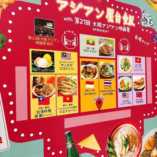 アジアン屋台飯 with 第21回大阪アジアン映画祭 8/13(水)→18(月) 今回はイートインのみのものが多く 持ち帰りできるものは限られていた 和歌山・岩出 「javajava」 大阪・九条 「サケトメシ」 タイ&ベトナム 大阪・九条 「Asian kitchen café 百福」カオ…