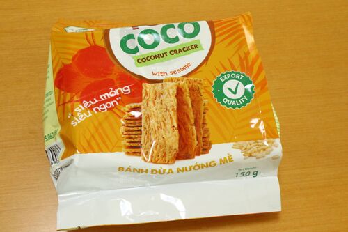 ココナッツクラッカー(ごま)198円+税 145g 511kcal /100g 種抜きデーツ(ナツメヤシの実) 168円+税 100g 296kcal ドライマンゴー(砂糖不使用) 188円+税 70g 240kcal ココナッツクラッカー(ごま)198円+税 145g 511kcal /100g ザクザクッとした食感で、ココ…