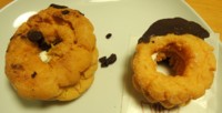 C ひびは上のみ/裏面のチョコ雑/サクサク感は1番ない よくいえば、甘くしっとり でも、、このドーナッツが1番甘い オイリーでもある