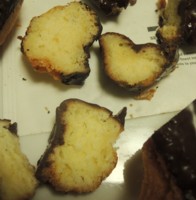 A 上下にひびが有る/チョコの厚み、艶等はほぼいっしょ/ 表面だけがサクサクしていて油がなかまでしみこんでいない