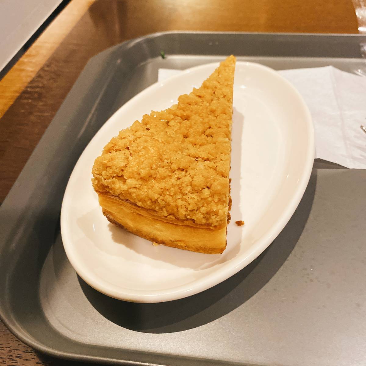 りんごコンポートとレーズン入りのメープル風味のベイクドチーズケーキに、くるみ入りのクッキークランブルをトッピングしました。 土台のクッキー生地にはシナモンなどのスパイスを効かせた、紅茶によく合う濃厚なチーズケーキです。