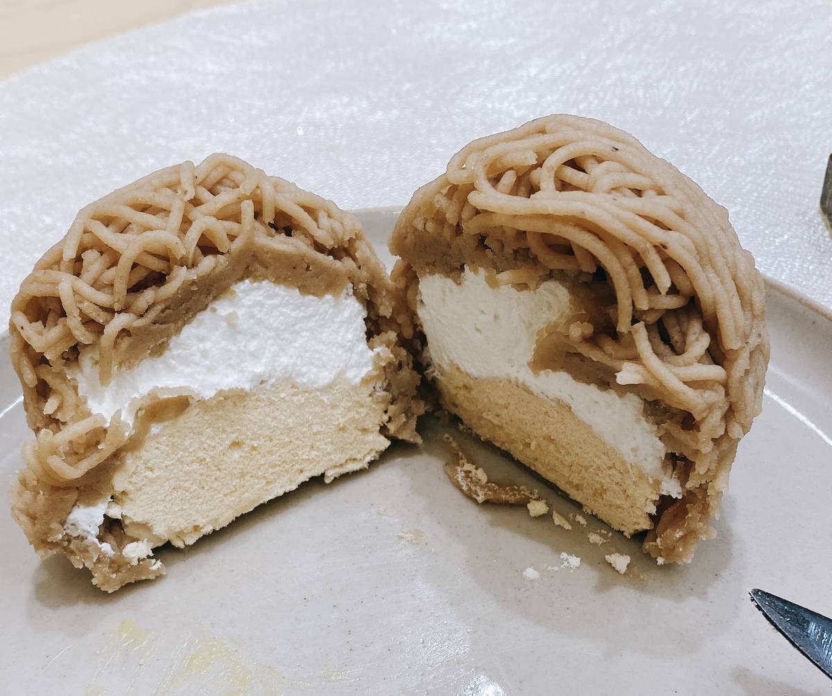底面にメレンゲ その上に生クリーム その上にモンブランを絞る