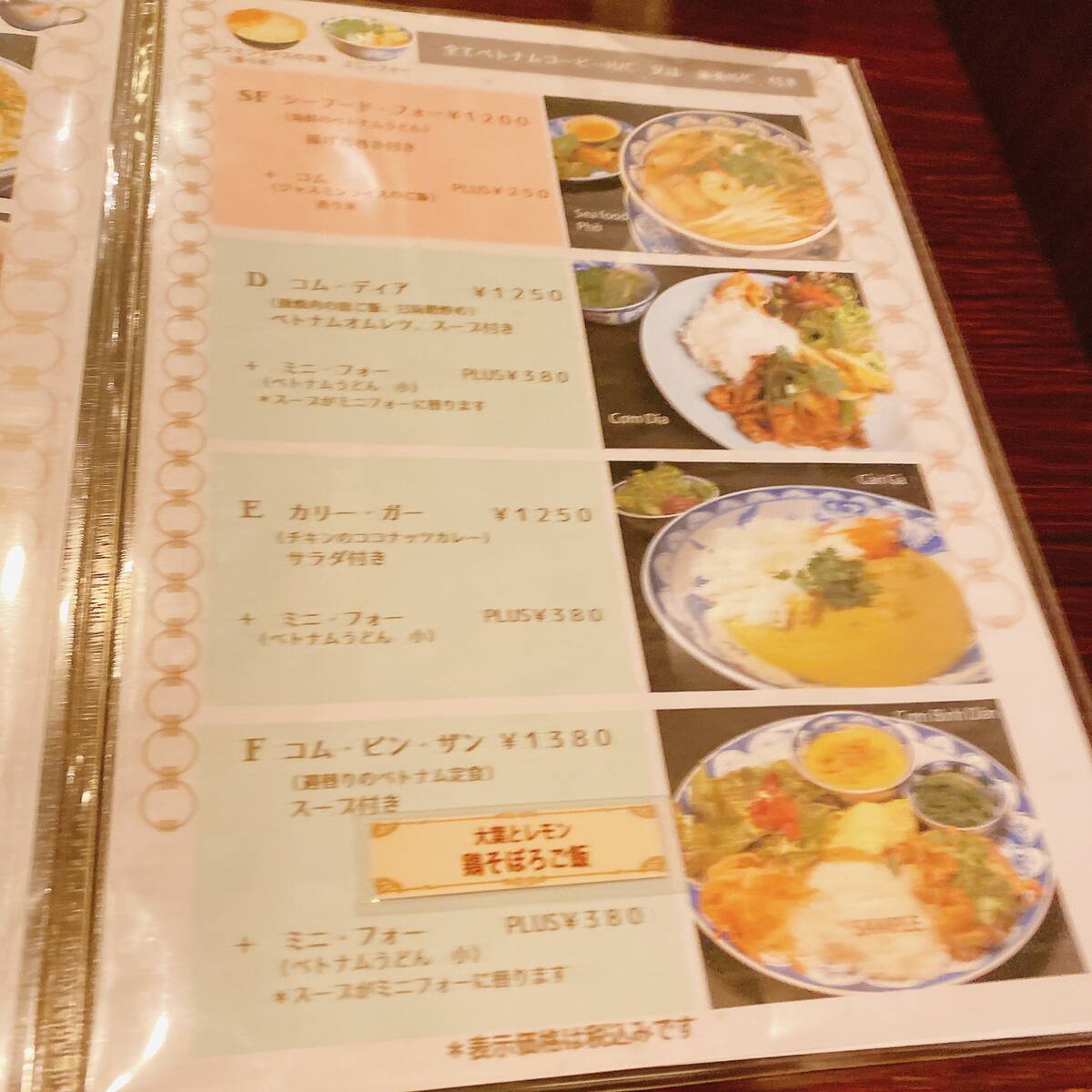 ・ミニ・フォー(ヴェトナムうどん小)付 プラス380円