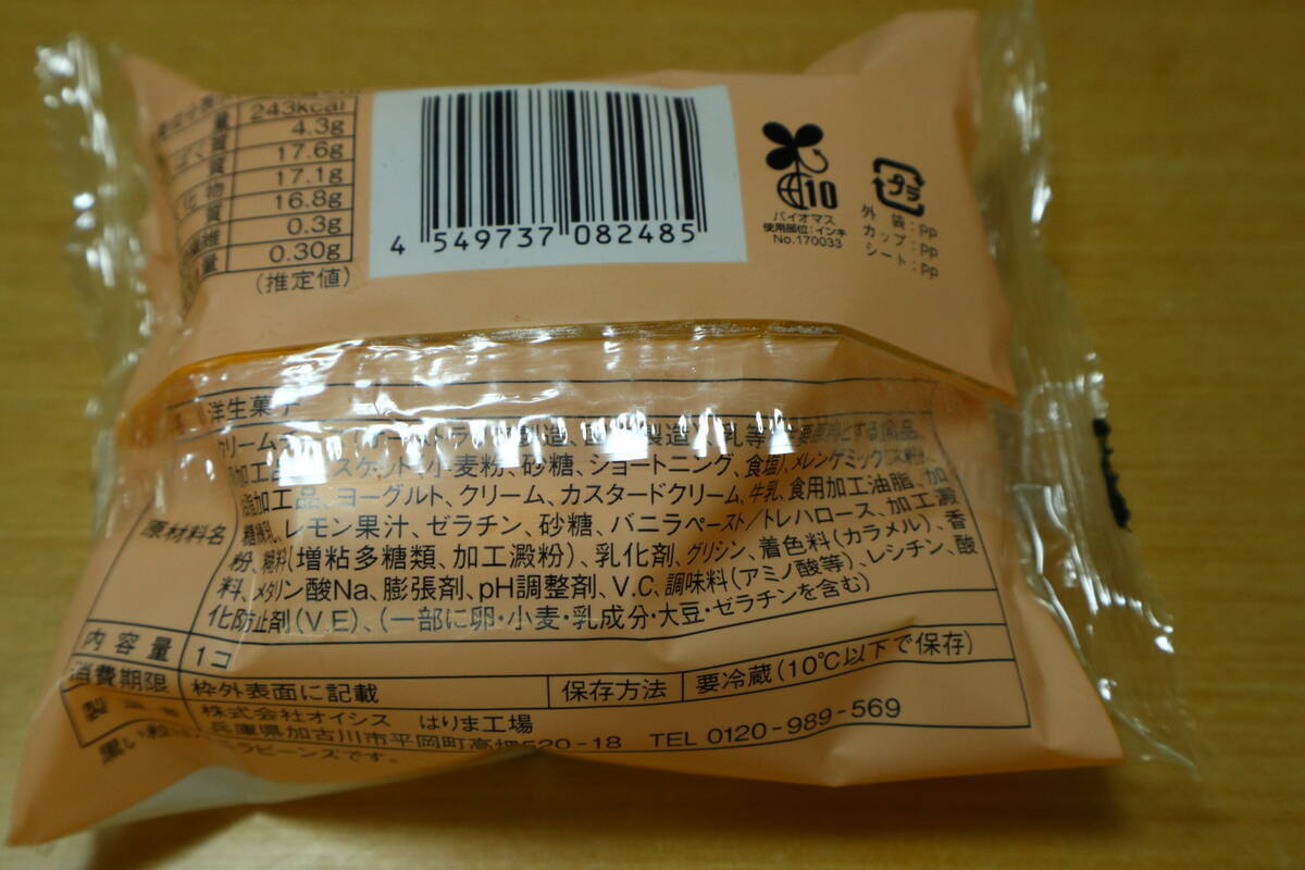 原材料 クリームチーズ(オーストラリア製造、国内製造)、乳等を主要原料とする食品、卵加工品、ビスケット(小麦粉、砂糖、ショートニング、食塩)、メレンゲミックス粉、油脂加工品、ヨーグルト、クリーム、カスタードクリーム、牛乳、食用加工油脂、加糖練乳、レモン果汁、ゼラチン、砂糖、バニラペースト/トレハロース、加工澱粉、糊料(増粘多糖類、加工澱粉)、乳化剤、グリシン、着色料(カラメル)、香料 メタリン酸Na,膨張剤、pH調整剤、V.C,調味料(アミノ酸等)、レシチン、酸化防止剤(V.E)