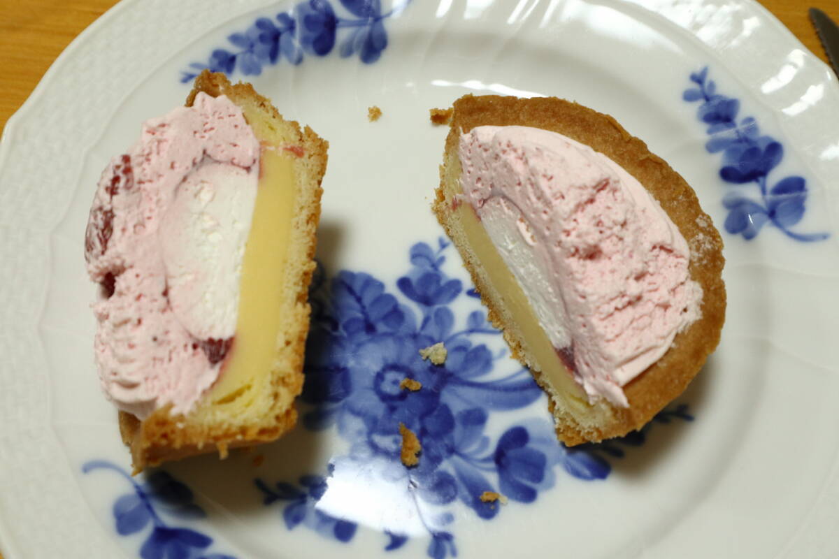 直径3.7 高さ1.5cm の白いドーム 酸味もあるレアチーズクリームか