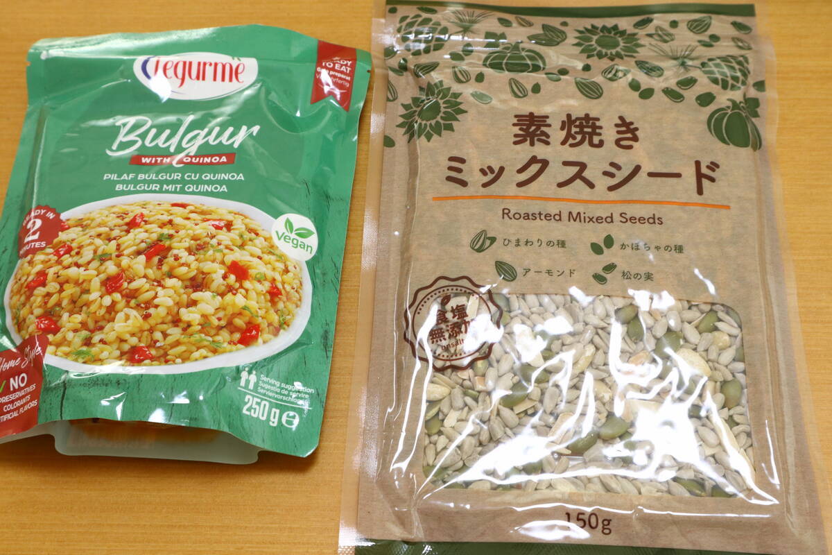 食塩無添加で、ヒマワリの種、カボチャの種、アーモンド、松の実が入っています。