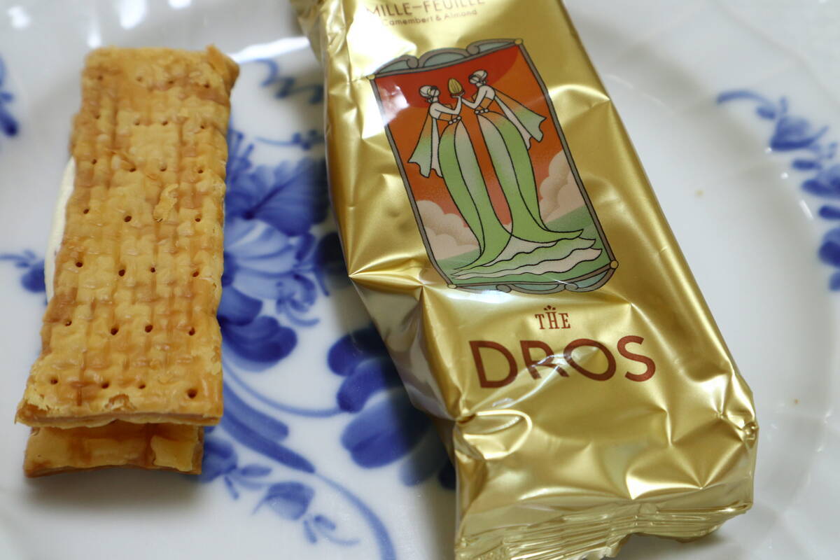 待望の新商品「ミルフィユ(カマンベール&アーモンド)」を9月1日(日)から発売いたします。黄金色に焼き上げたサクサクのパイ生地とカマンベールクリームで仕立てたミルフィユ。 カマンベールの風味と塩味のバランスが特徴のクリームは、アーモンドダイスの食感がさらなるアクセントとなり、味わいや食感を愉しめる逸品です。(チーズパウダー中カマンベール75%以上使用)優美に向かいあう女神を幾重にも重なる2枚のパイ生地に見立てデザインしました。軽やかで上品なお菓子の味わいを、手にとる瞬間から楽しめる【DROS】ならではの魅力的な商品です。夏の名残と初秋への移り変わりを感じながら、 「ミルフィユ(カマンベール&アーモンド)」で、至福のスイーツタイムを過ごしてみてはいかがでしょうか。