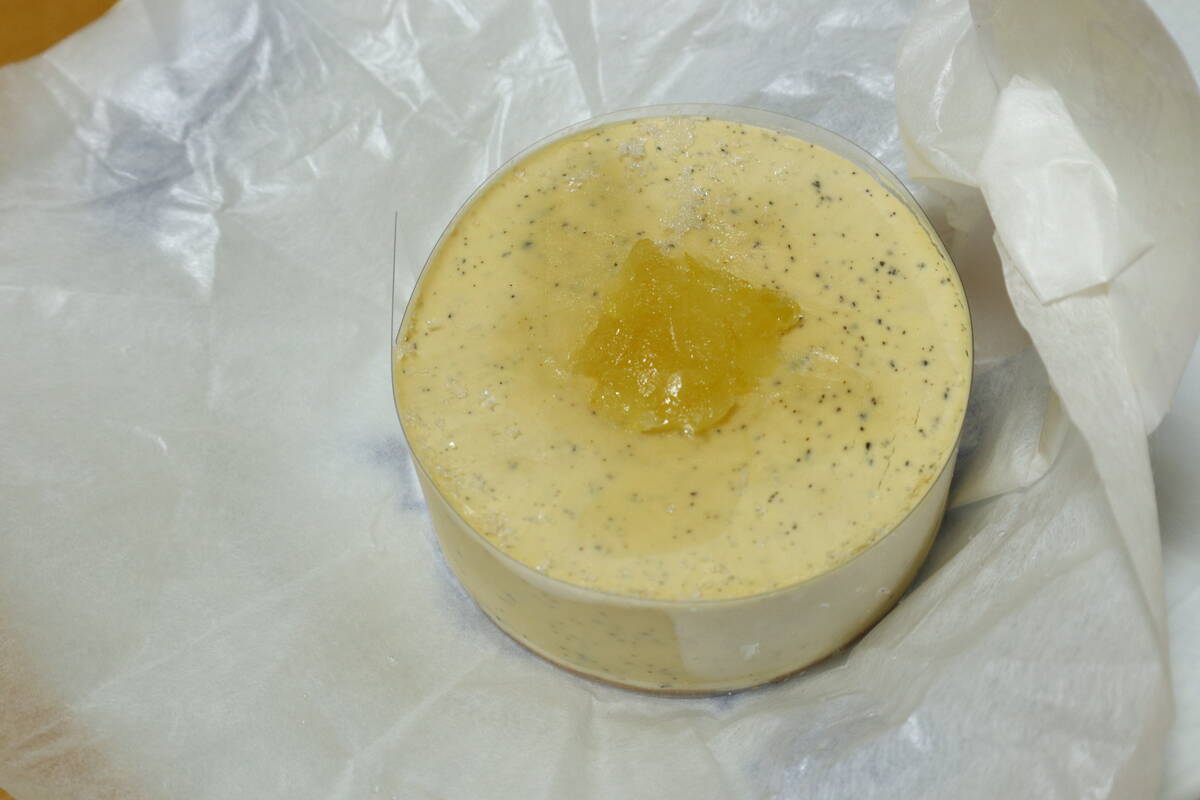 中央が窪んでいて上面にレモンのコンフィチュール レモンの皮もかな 酸味しっかり