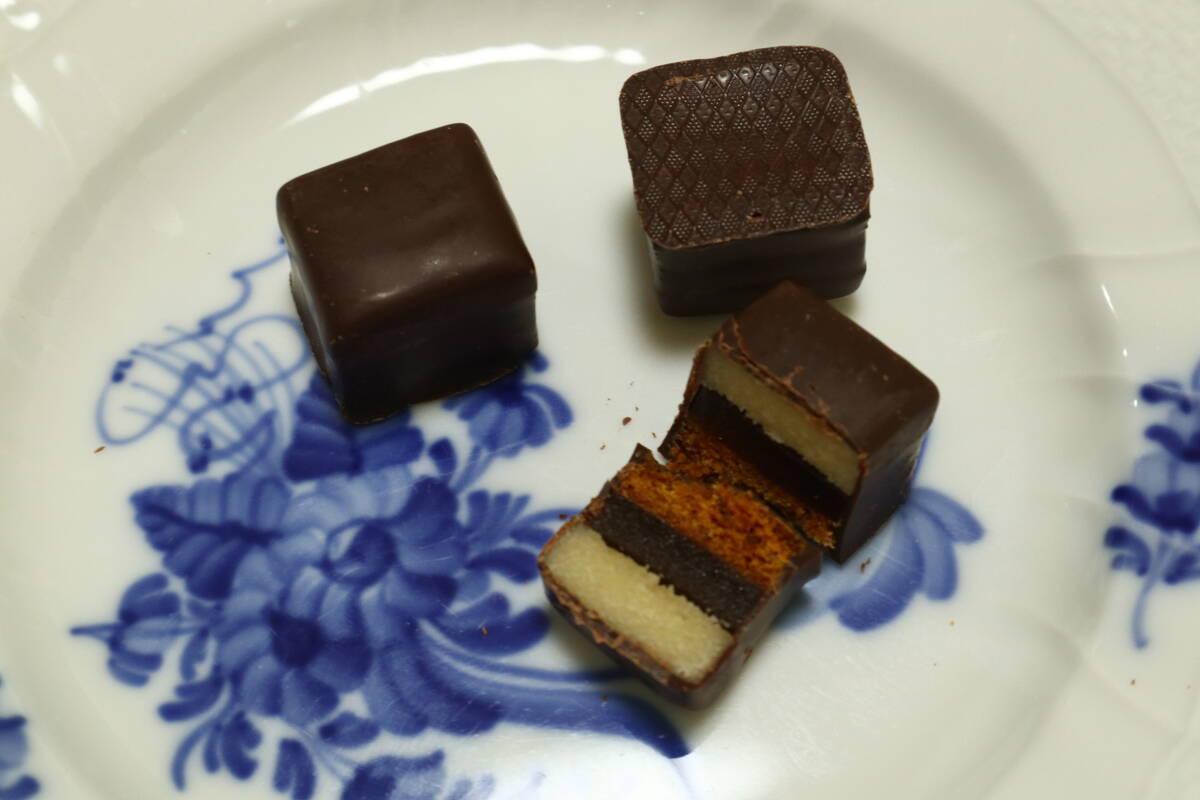 ドミノの駒(シュタイン)にかたちが似ていることから名前が付いたドミノシュタイン。ドイツの伝統的なクリスマスのお菓子です。3層となったマジパンの甘み、アップルフィリングの酸味、レプクーヘンのスパイス感をチョコレートがまとめ上げ、奥深く豊かな味わいを楽しめます。